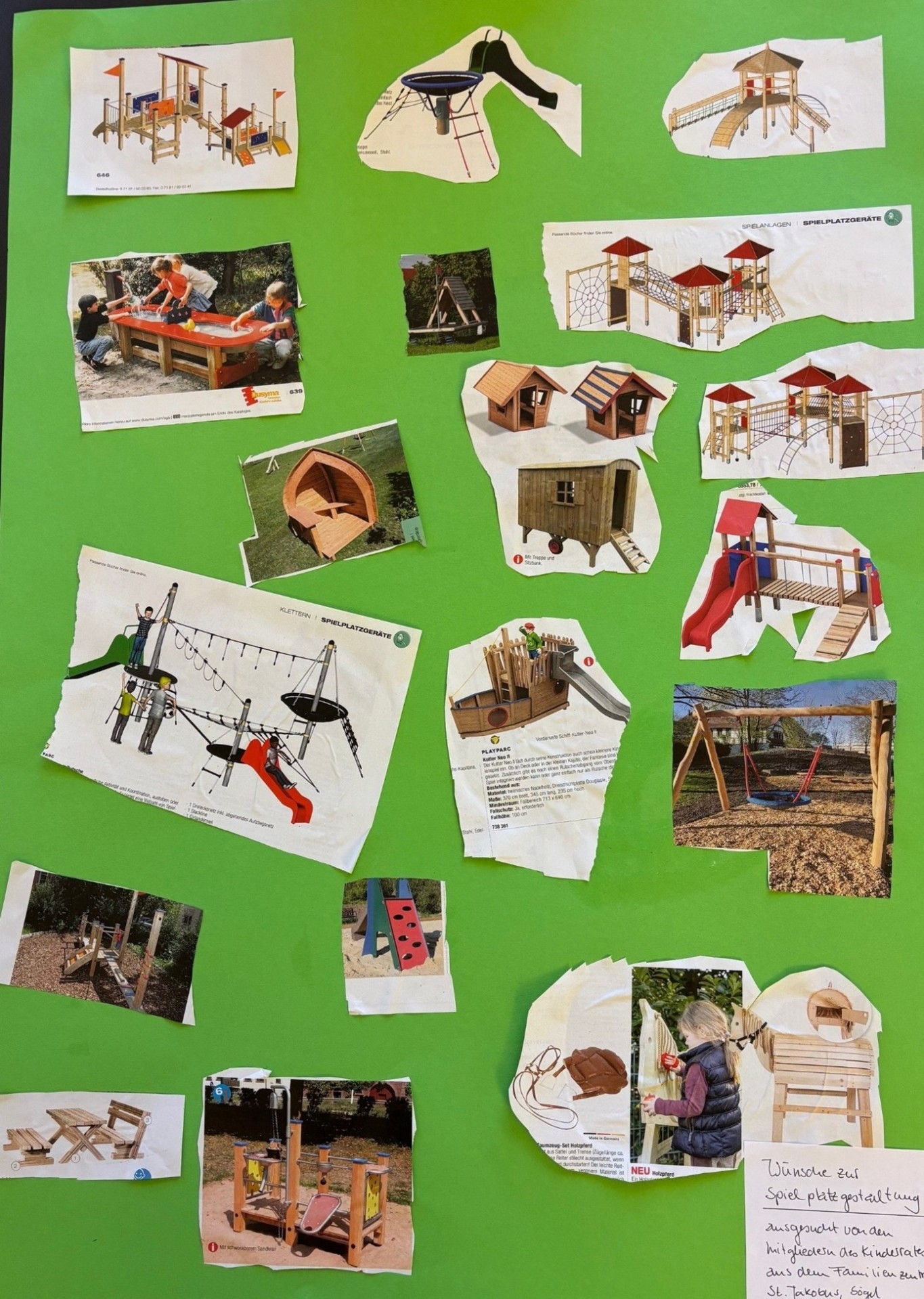 - 💡 Die Kinder wünschen sich: eine Schaukel für die Kleinen 👶, eine Holzwippe ⚖️, ein Holzpferd 🐴, eine schnellere Rutsche 🏂, mehr Sitzgelegenheiten mit Tisch & Dach für ein Picknick🪑☂️ und einen sauberen Platz ohne Müll 🗑️.