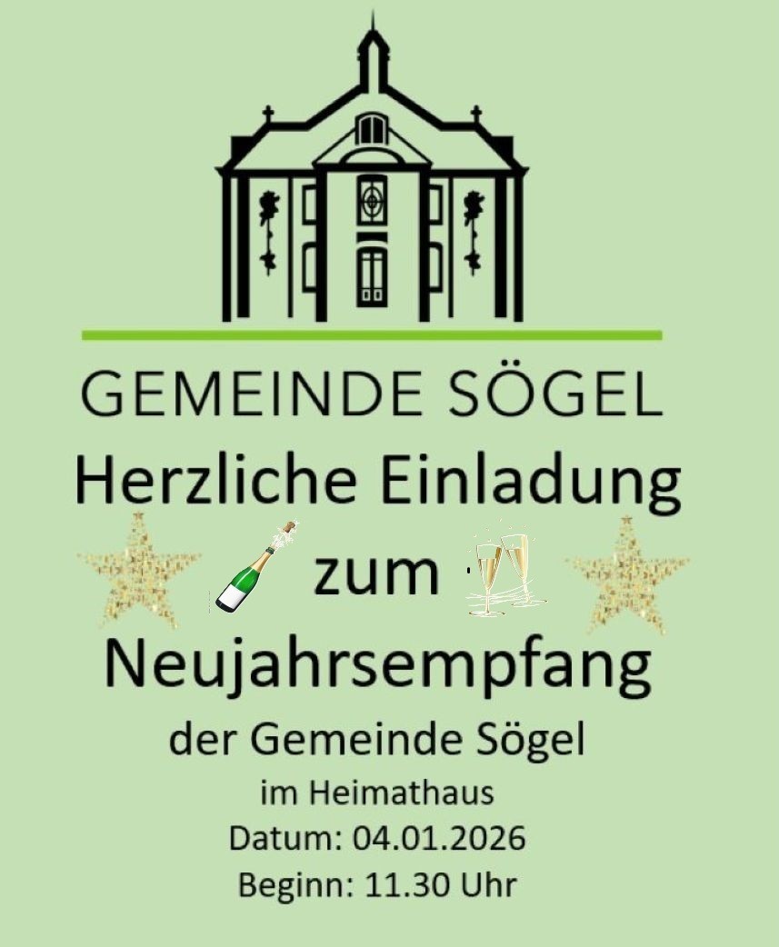 Herzliche Einladung der Gemeinde Sögel zum Neujahrsempfang im Heimathaus am 04.01.2026 um 11.30 Uhr